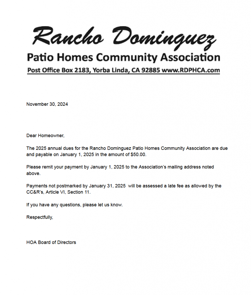 RDPHCA ANNUAL ASSESSMENT NOTICE (DUES)